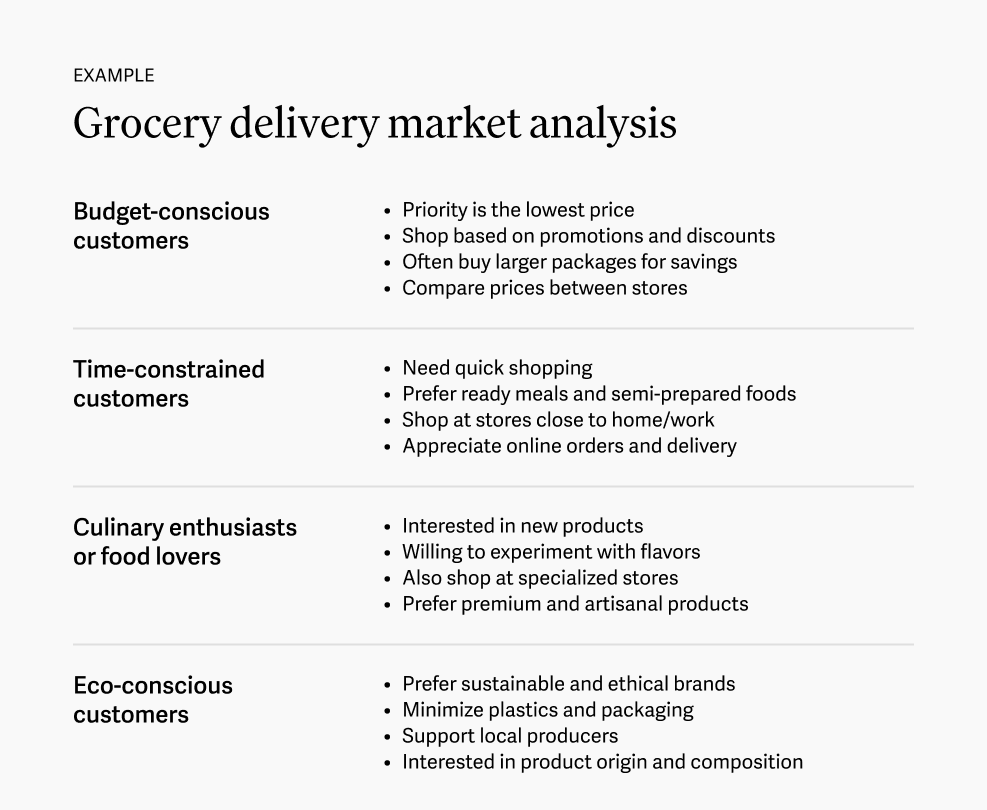 When analyzing the grocery delivery market, for example, we might focus on women responsible for grocery shopping for households with four or more members.